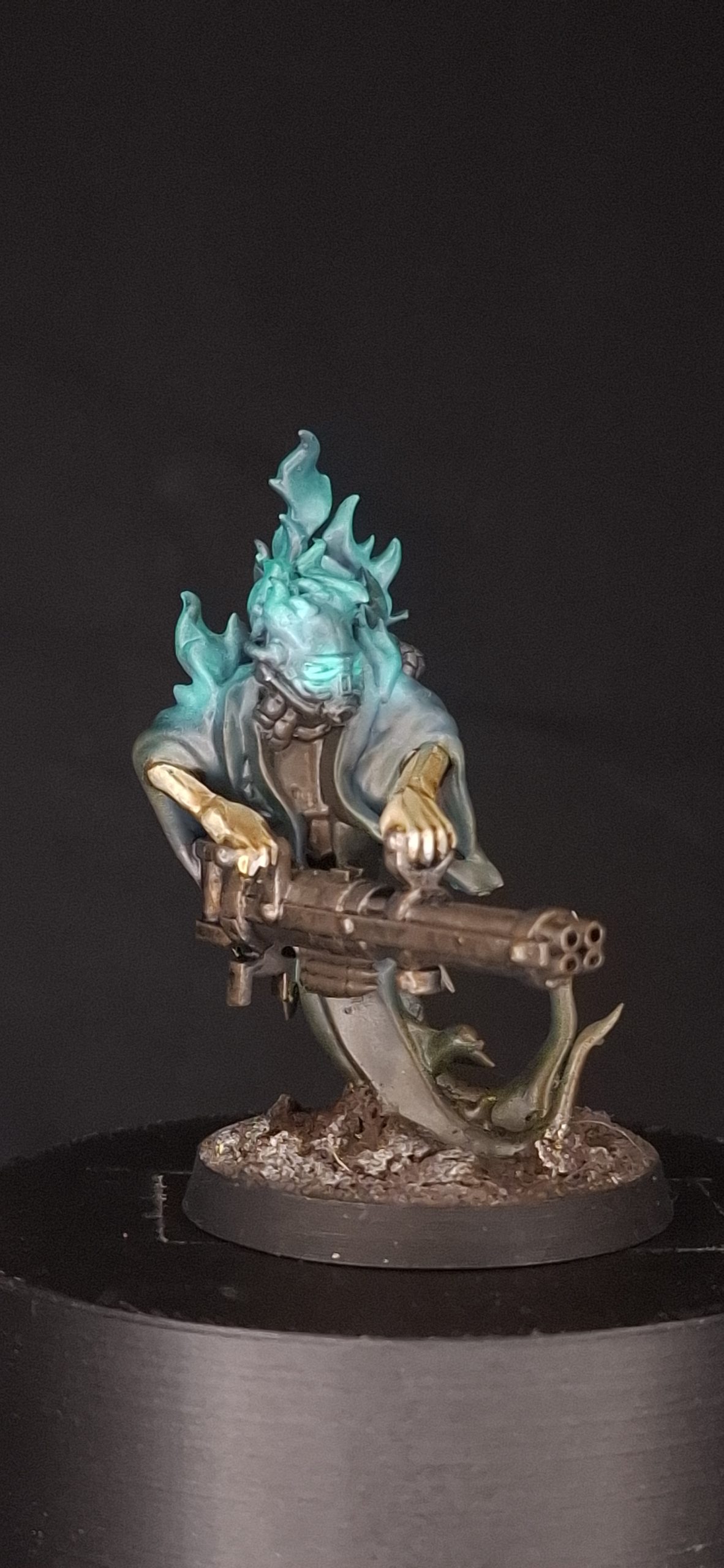 Goetic Warlocks are horrific creations from the death factories of the 3rd Circle of Hell, manufactured from captured priests, prophets, vicars, rectors and monks. Fiendish machines first burn their flesh away with hellfire, encasing the still-living skeletons in an infernal suit of armour and stamping them with goetic runes. The process is so agonising that they consent to a demonic pact to bring end to their pain. Thus a new Goetic Warlock is born, ready to hunt the living they once swore to protect.