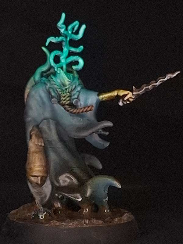 Choristers sacrifice themselves upon black altars, and if worthy, rise after nine days, finishing their own beheading as their severed heads begin to sing. Their hymns conjure visions of Hell, sapping the strength and resolve of all who hear, the Chorister’s cold blood forming diabolic symbols in rhythm with their unholy chorus. Those who hear their song find their minds flooded with visions from the Pits of Hell, weakening both their resolve and strength, as the dreadful music eats away at their very soul.